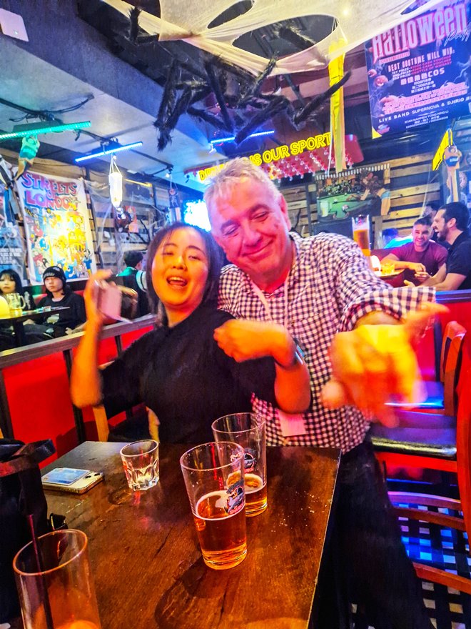 Tineri din toată China studiază aici și vor să se și distreze. Atmosfera este extraordinară. Noi am fost extrem de norocoși și am nimerit la un local unde cânta live o formație rock. Mai mult, pentru exotism, pentru grupuri, ofereau bere în pahare de PATRU litri.