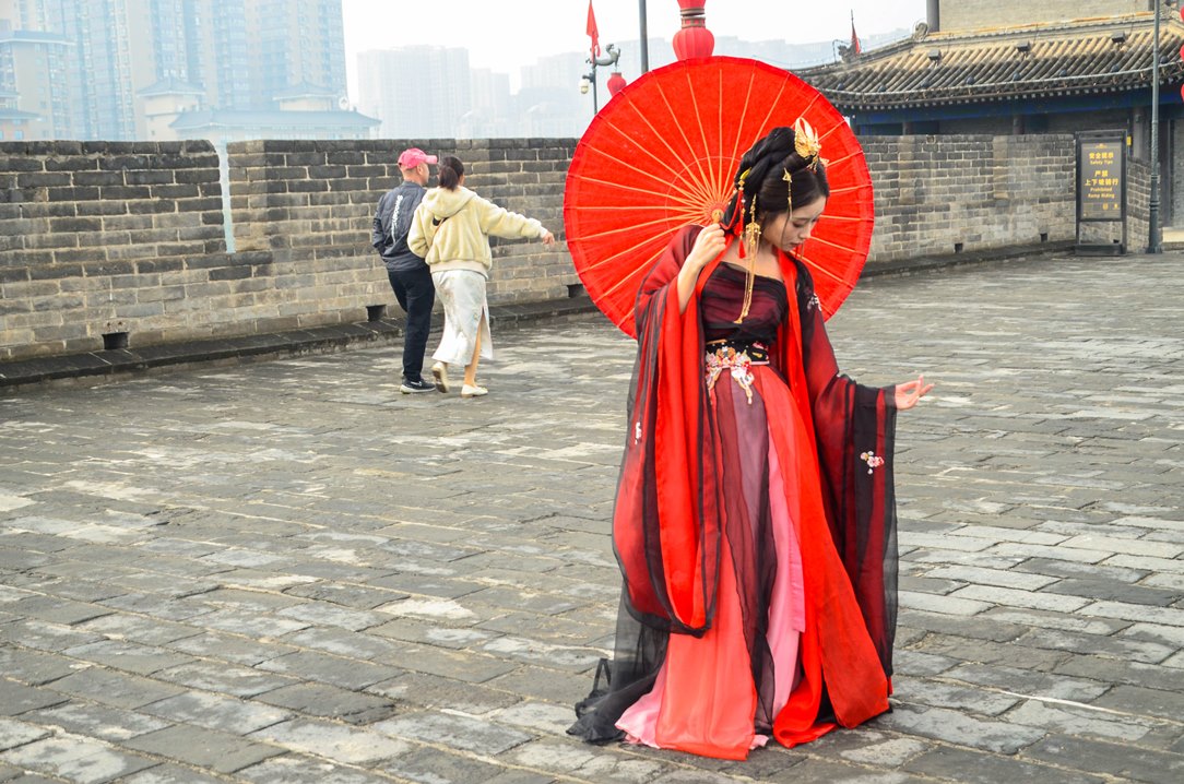 După ce s-a risipit smogul, pe zid au apărut tinere chinezoaice îmbrăcate în hangfu, costume tradiționale care n-aveau cum să nu fie observate și admirate. Unele erau însoțite de fotografi, profesioniști sau nu, dat toate acceptau să fie fotografiate de turiști sau chiar să fie fotografiate alături de ei. Este o acțiune de marketing pentru promovarea regiunii, dar și a lor, pentru a fi cooptate în acțiuni de promovare a Chinei, mai elaborate și care să le asigure și câștiguri.